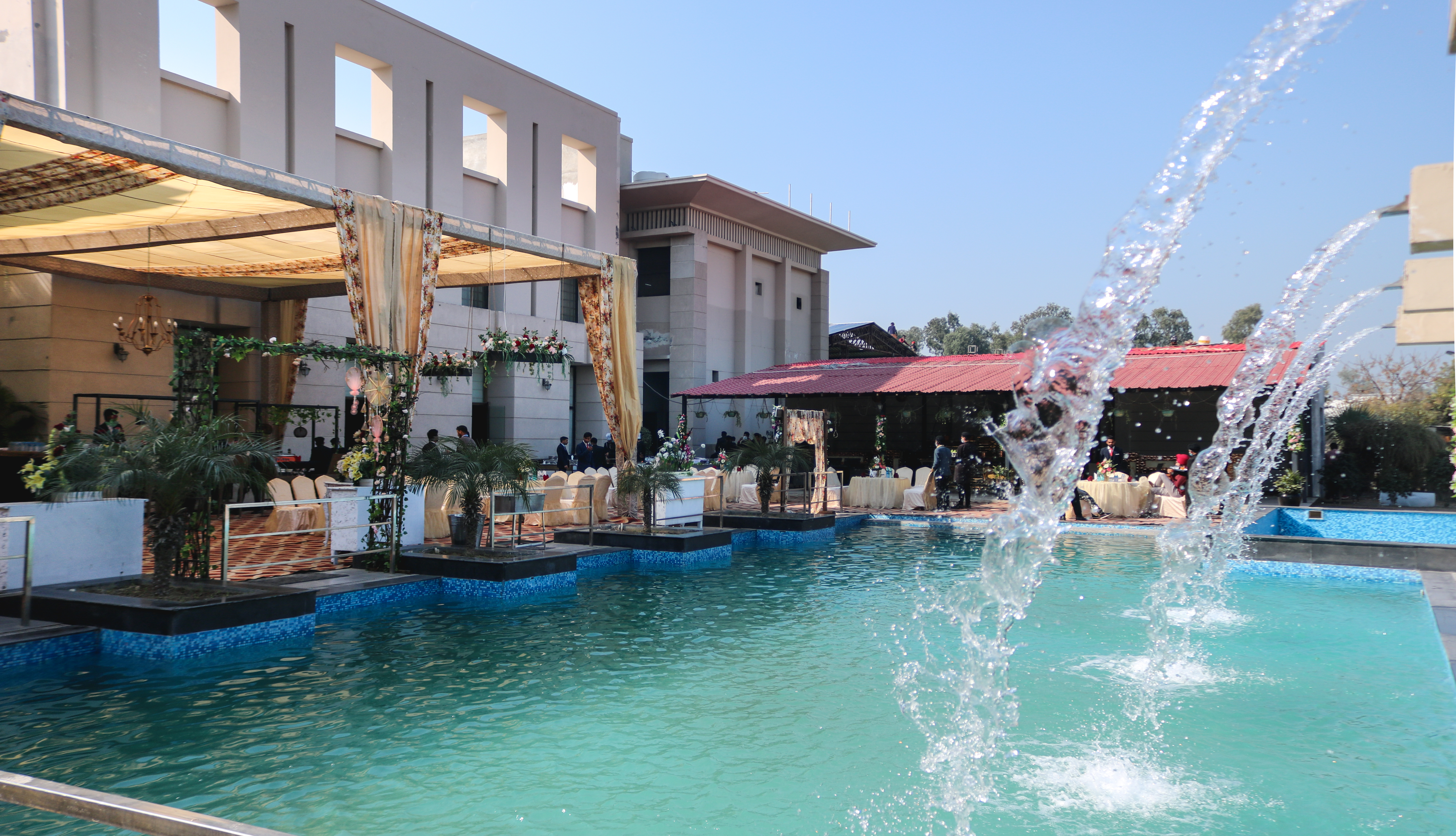 As you step into our stunning resort, you’ll be captivated by the beauty that surrounds you. Take a virtual stroll through our gallery to get a glimpse of what awaits you: Explore our meticulously manicured gardens, filled with vibrant greens and towering palm trees, our banquet spaces, and our curated decor.